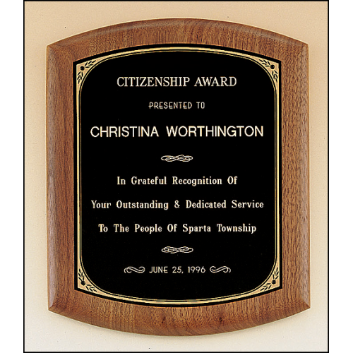The original and still the best plaque in America. Solid American walnut plaque with a precision elliptical edge and black brass plate with printed border. Laser engravable plate(s). Solid brass engraving plate(s). Individually boxed.