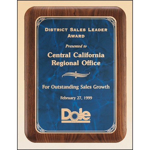 Solid American walnut Airflyte plaque with marble finished plates, available in either: sapphireor emerald. Laser engravable brass plate. Made in USA. Individually boxed. Plaque plates copyright design: TMC 1998