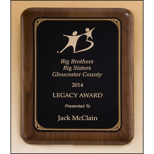 American walnut plaque black engraving plate with gold border. Laser engravable plate. Individually boxed. LaserFX plate is brass-plated steel, we recommend laser engraving only.