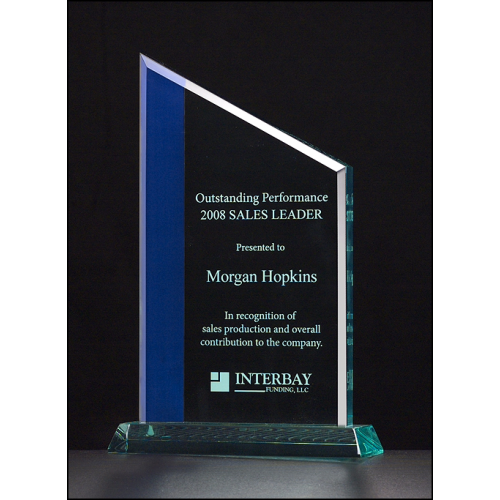 3/4 thick acrylic award. Jade only. Individually gift boxed. Engraving in blue highlight area is not recommended.