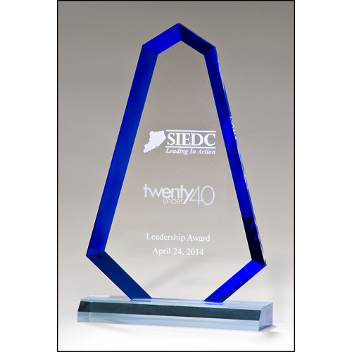 Flame Series acrylic with blue accented bevel and base. thick blue acrylic. Individually gift boxed.